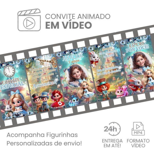 Convite Animado Alice no País das Maravilhas